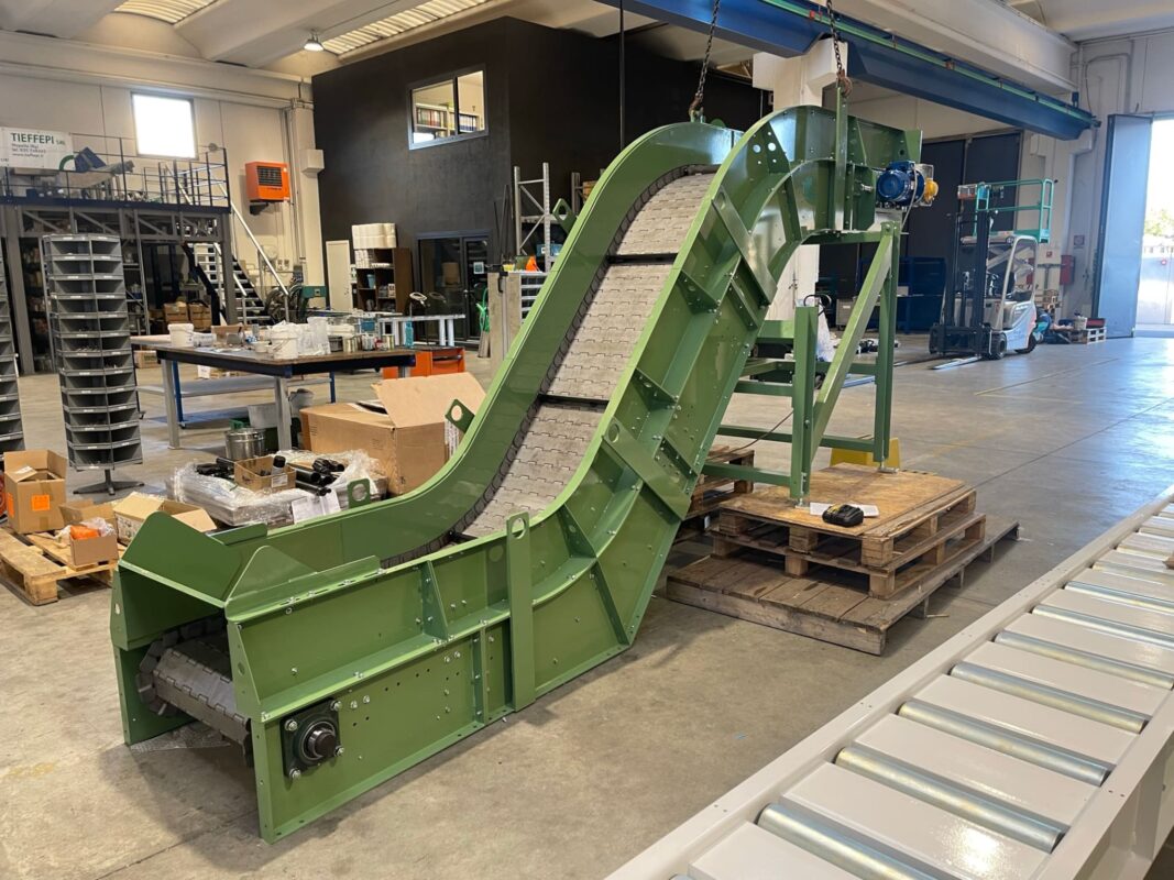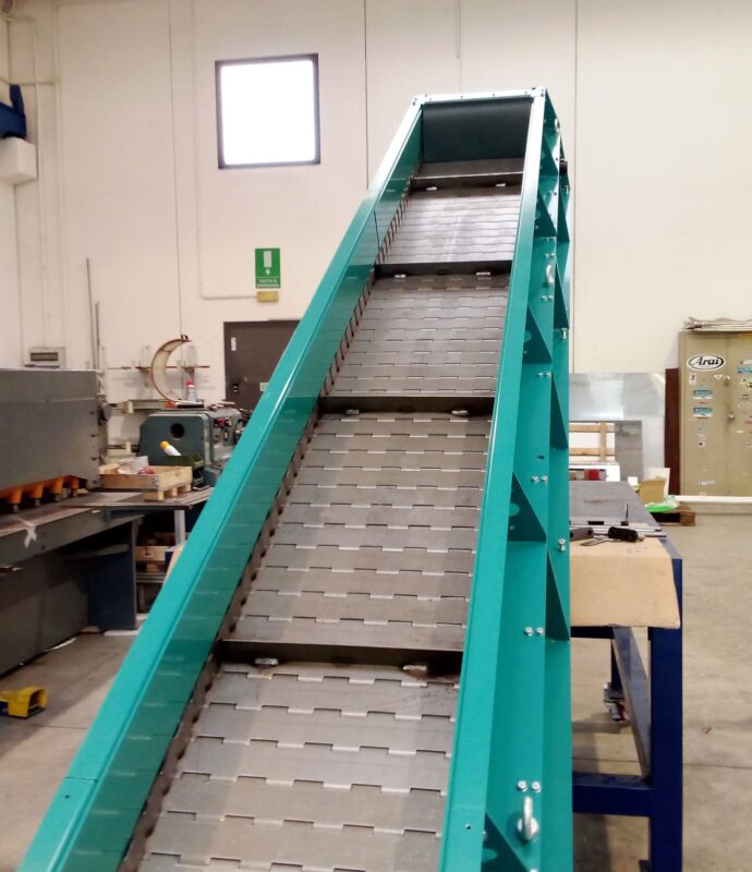 Questa tipologia di trasportatore trova largo impiego in settori come fonderie, pressofusioni e lavorazioni meccaniche, dove è necessario movimentare particolari metallici, sfridi e scarti di produzione, anche in presenza di temperature elevate.